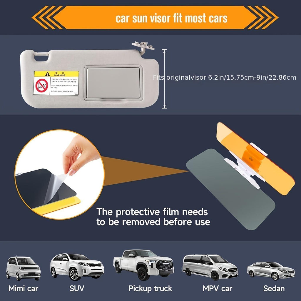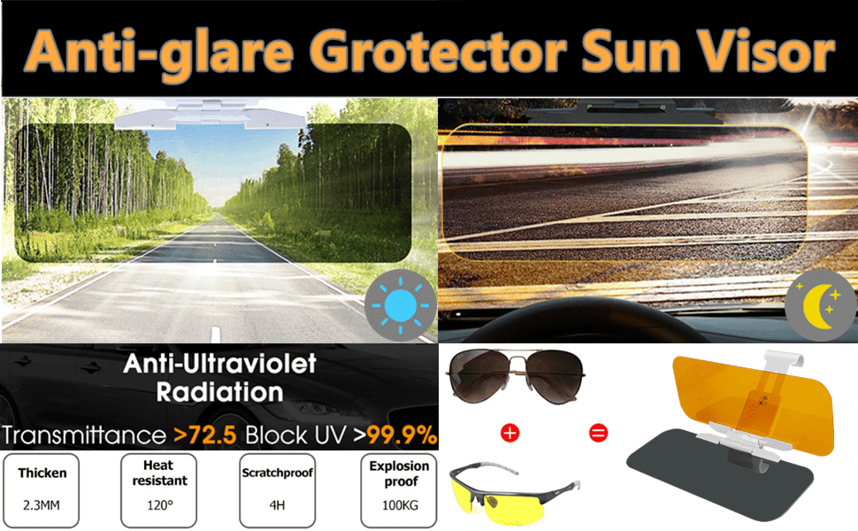 2-in-1 Functionality: This car visor is designed with a dual-layer visor design. The grey visor can effectively protect your eyes from the blinding sunlight during the day, while the yellow visor prevents car headlights at night from impairing your vision.