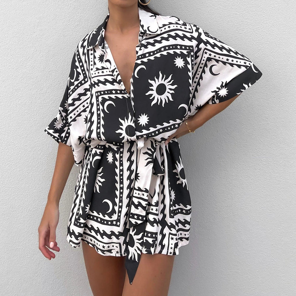 Boho Floral Romper Shorts – Oversized Button-Down Jumpsuit for Effortless Vacation Vibes