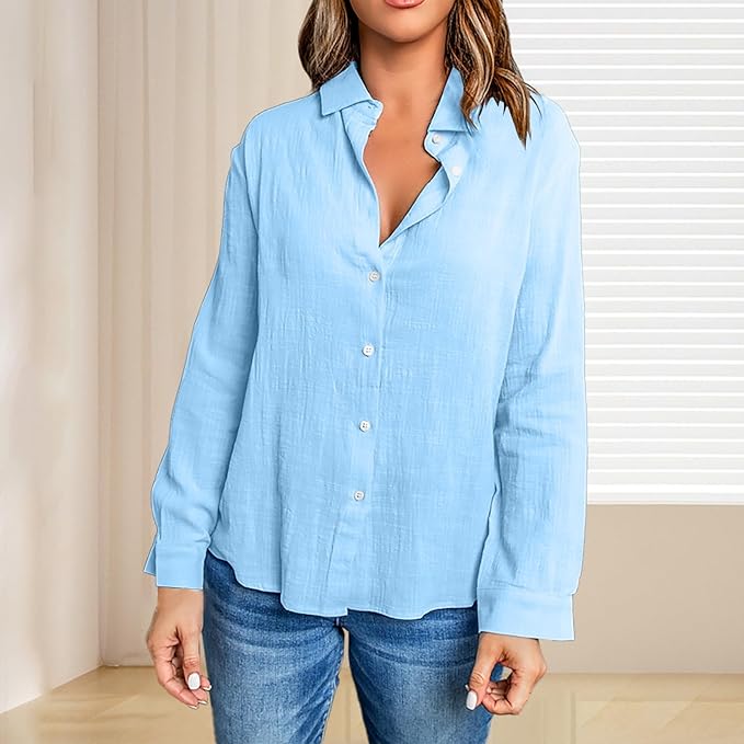 Elevate your everyday wardrobe with this breathable cotton linen shirt designed to bring ease, style, and versatility to any look. The long sleeve, button-down silhouette pairs refined structure with casual softness, making it a go-to choice from office to weekend brunch. With its chic lapel collar and airy fabric, this blouse is a must-have for sophisticated, low-maintenance dressing.