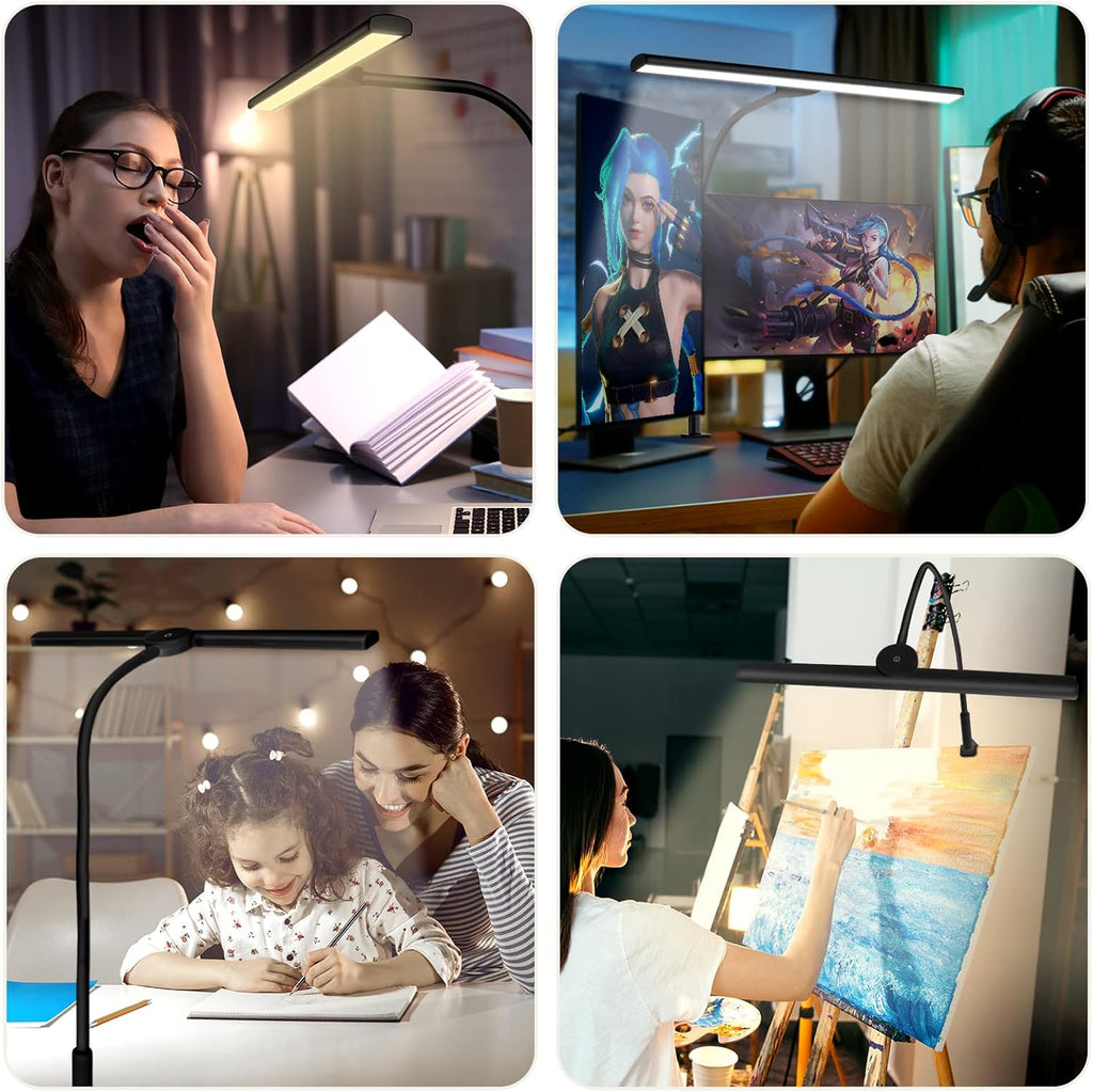 The unique double-head design allows for independent adjustment, so you can light up a broad surface or focus in on specific areas. Ideal for large desks, shared workstations, or multitasking setups, each head moves smoothly for targeted lighting. Whether you're sketching, typing, or soldering, the lamp eliminates dark corners without casting harsh shadows. It combines functional flexibility with a clean, modern aesthetic.