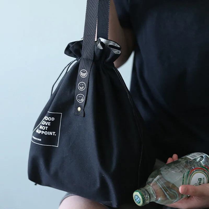 Made from durable, eco-friendly canvas, this lunch bag combines casual style with everyday durability. The drawstring top adds a soft, effortless touch while securing contents without bulky zippers. Its neutral tones and minimalist design make it easy to pair with any outfit or bag. Perfect for those who value practicality without compromising aesthetics.