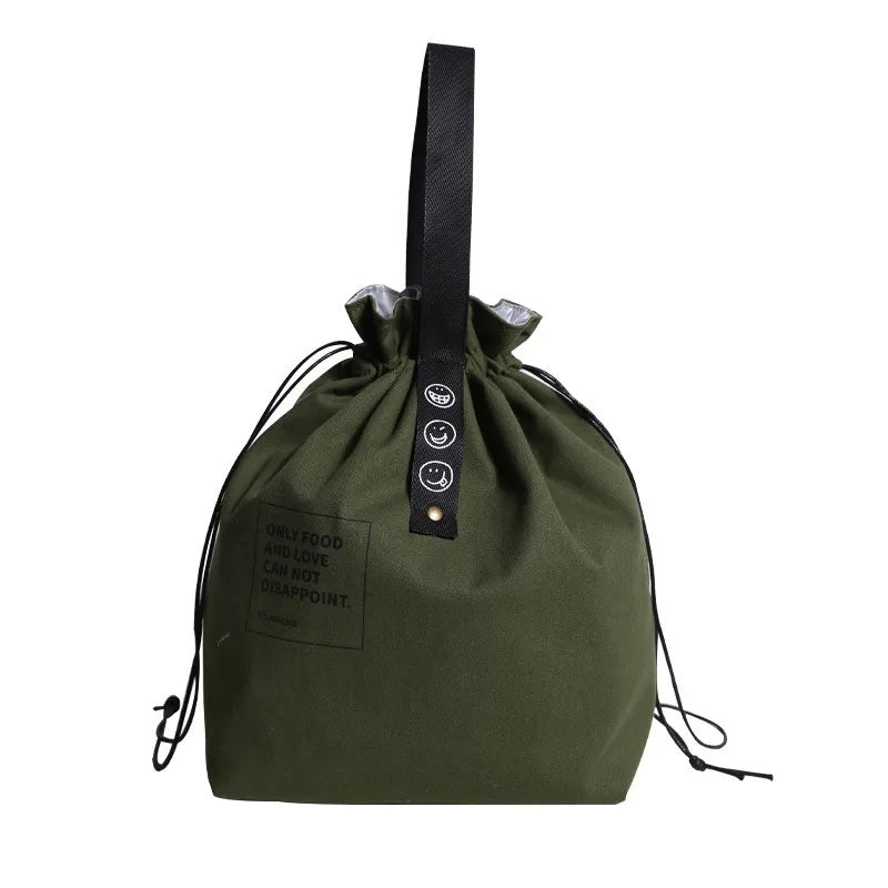 Drawstring Canvas Lunch Tote Bag – Insulated Fresh-Keeping Bento Box Carrier for School, Work, Picnics, and Daily Food Storage Style