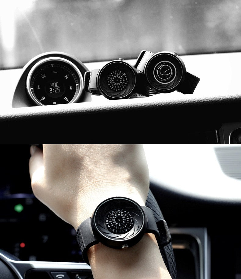 Crafted with lightweight materials, this wristwatch sits comfortably on your wrist without the bulk of traditional timepieces. The slim profile makes it ideal for extended wear, whether you're navigating your day-to-day or heading out for the evening. Despite its industrial styling, it feels barely there—delivering both presence and comfort. It’s a functional accessory that adapts effortlessly to your lifestyle.