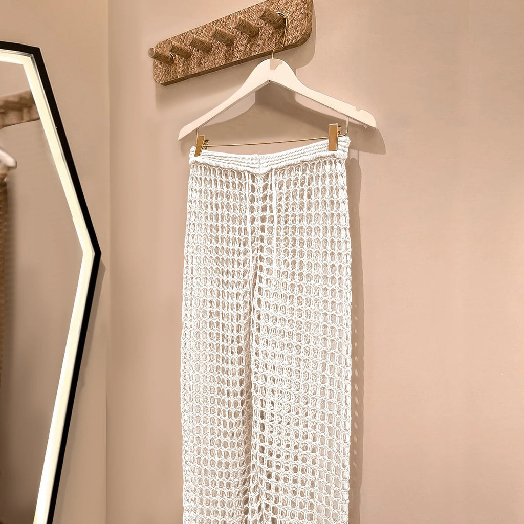 Sexy Lace Crochet Bikini Cover-Up – Beach Pants Swimwear Tunic with Hollow Out Design for Summer Poolside & Seaside Glam