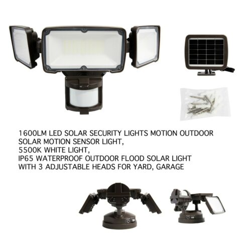 1600LM LED Solar Security Lights Motion Outdoor, Solar Motion Sensor Light BLACK