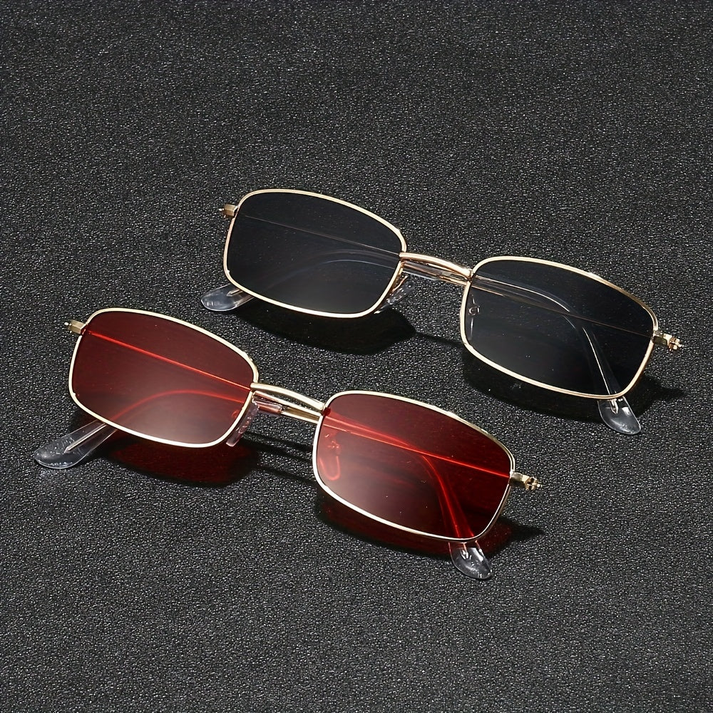 2 Pairs of Trendy Metal Frame Glasses with Vibrant Red and Black Tinted Lenses for Fashion-Conscious Buyers