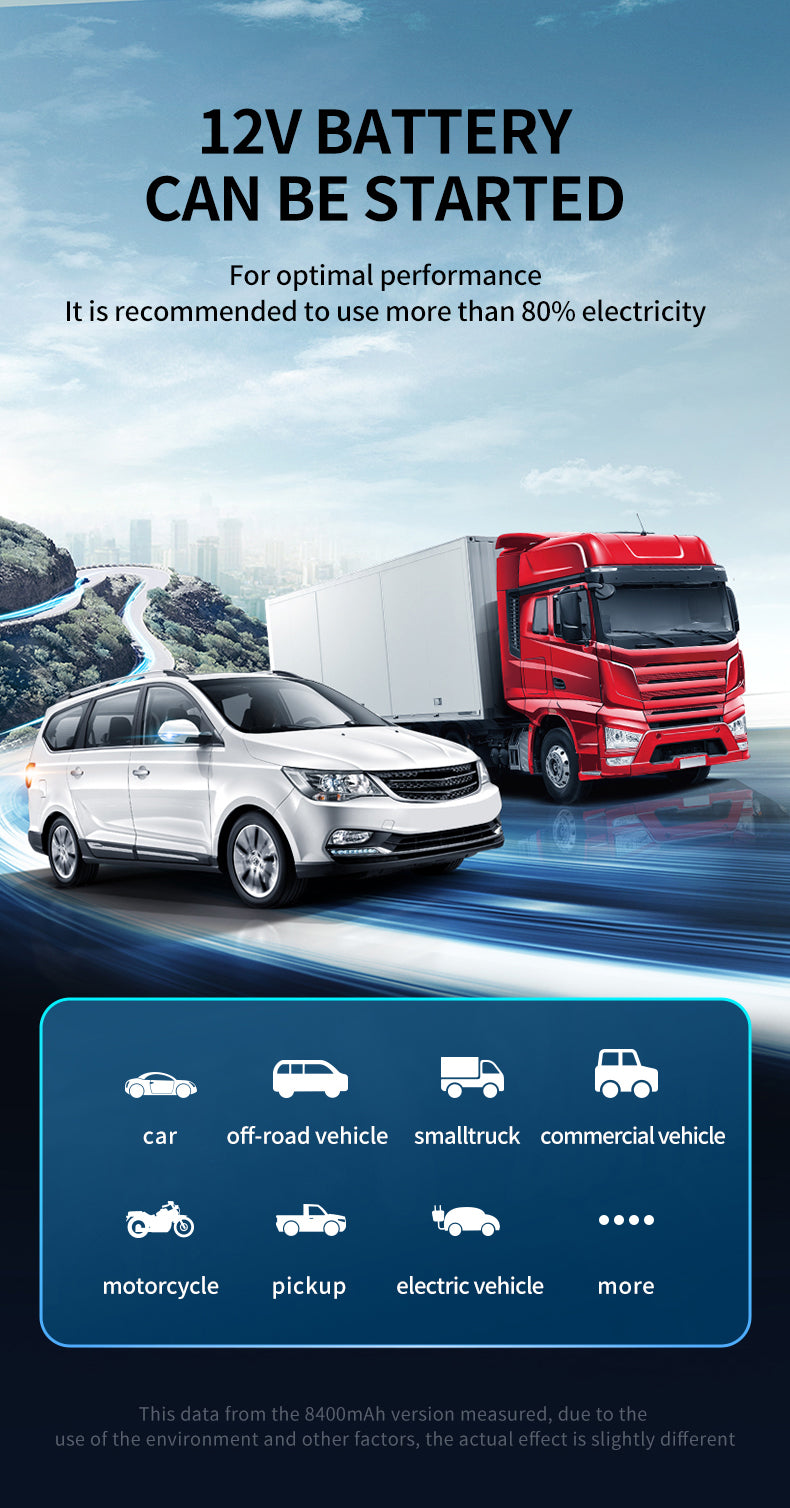 UltraSafe Technology - This user-friendly car jump starter is designed with safety in mind. Featuring spark-proof technology and reverse polarity protection, it ensures safe connections to any 12-volt vehicle, eliminating the risk of incorrect connections or sparks.