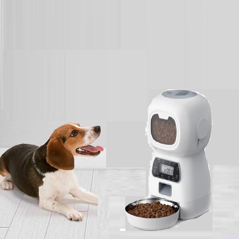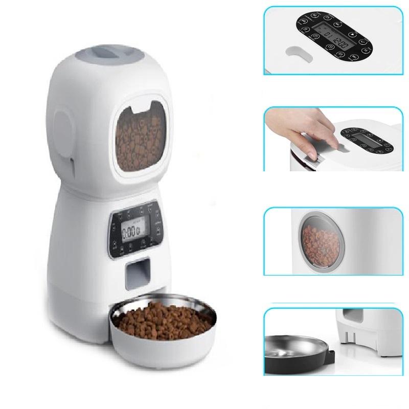 • Customize Feeding Time and Amount - This automatic pet feeder provides flexible meal portions from 1 to 20 portions per meal, 5g for every portion, and the container capacity is 3.5L.