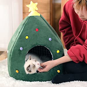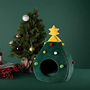 Looking for the perfect present to wish your furry friends happy holidays? This plush Christmas tree cat bed is all your cat will ever want where she can lounge, nap, and cuddle. It can also be an added decoration fit for the season of Christmas.