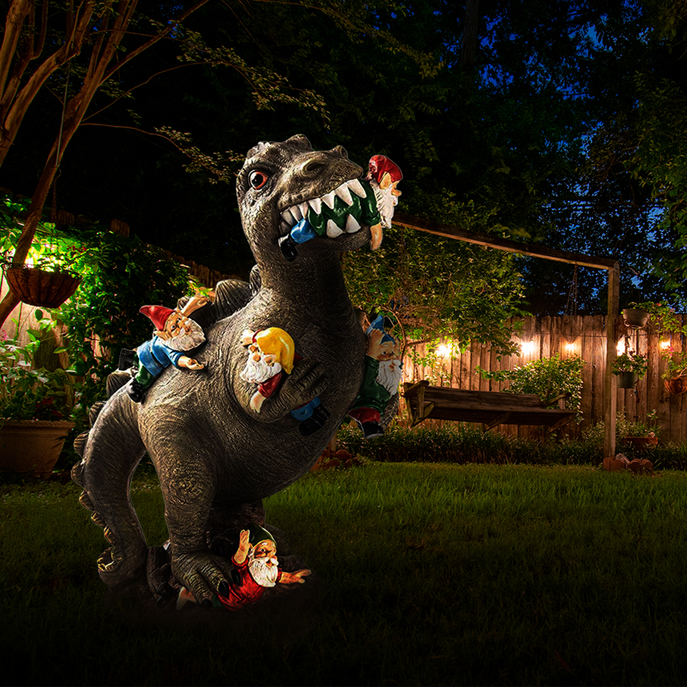 Dinosaur Eating Gnomes Garden Statue