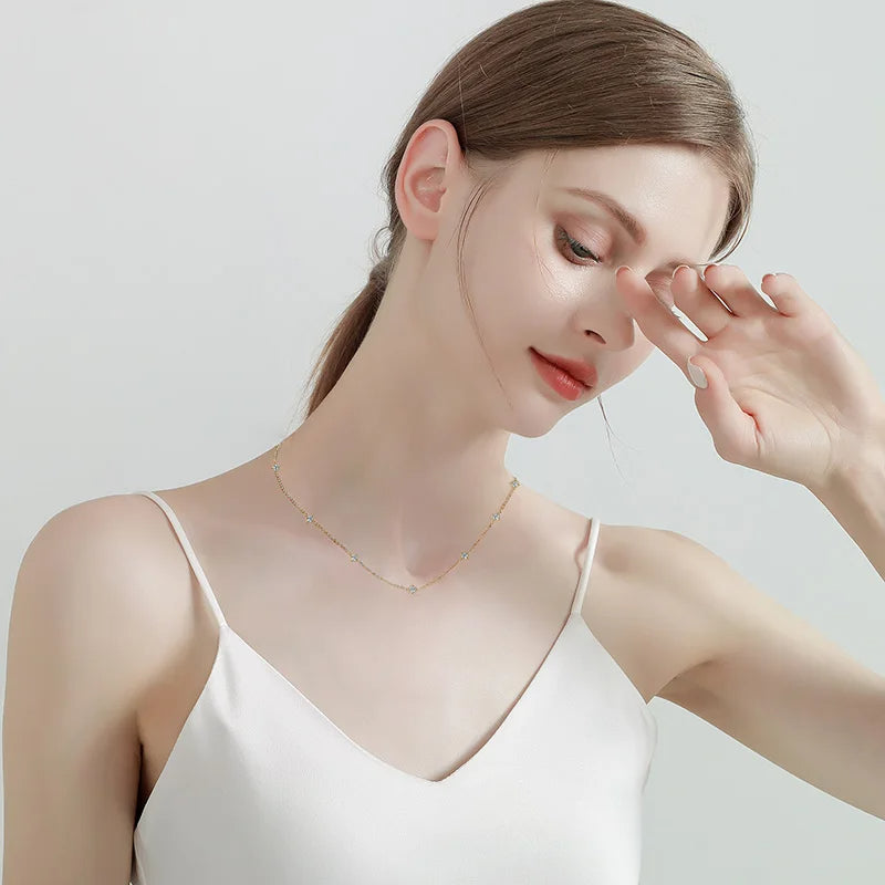Fashion Round Moissanite Choker – 3mm 925 Sterling Silver Clavicle Necklace for Girls, Elegant Jewelry Gift