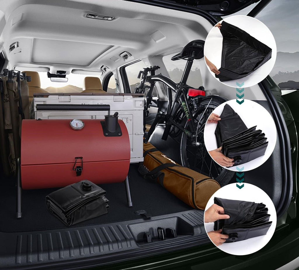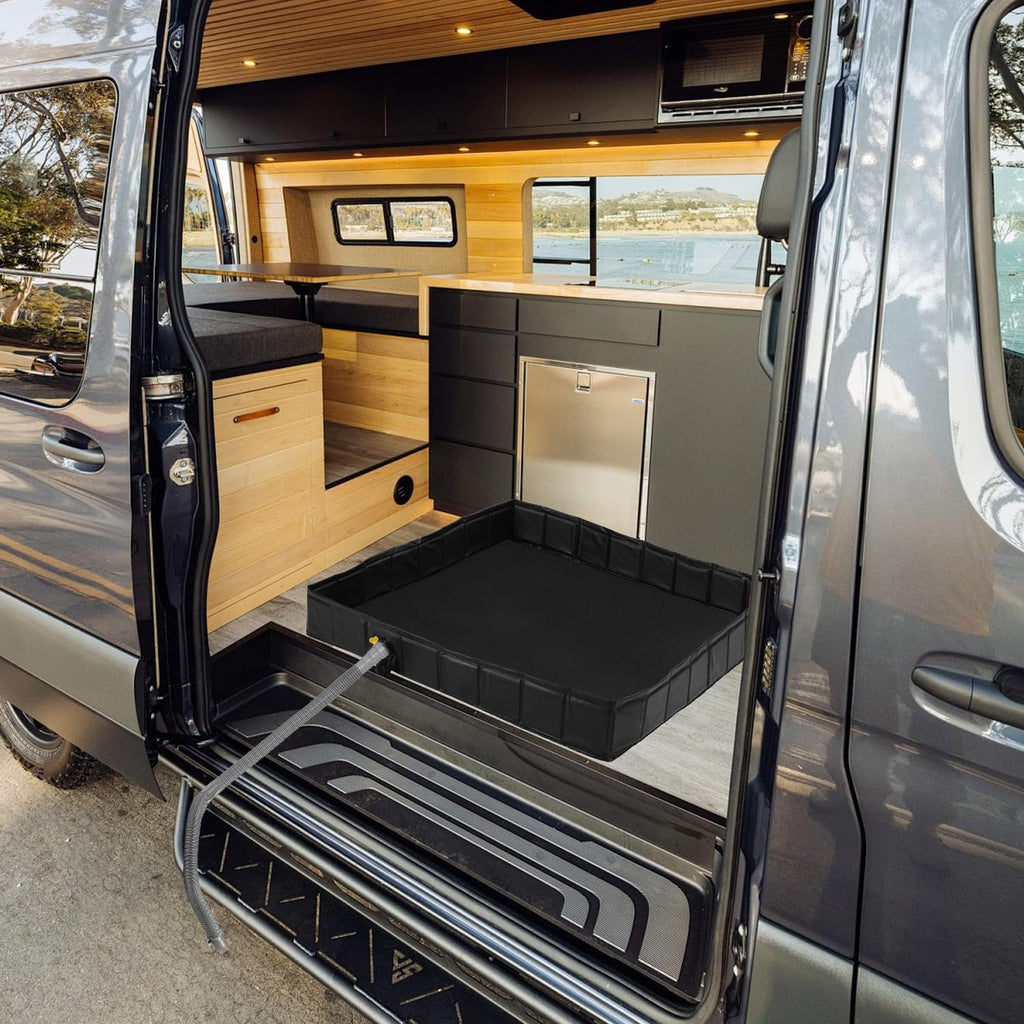 This shower base folds down neatly to a compact size of 9×6×5 inches, making it effortless to carry or stash in your backpack or RV. It unfolds quickly into a generous 41×41×5 inch square, giving you a roomy platform for showering, changing, or freshening up. Lightweight yet practical, it's ideal for van life, car camping, or festivals where portable hygiene solutions matter. Say goodbye to bulky gear and hello to on-the-go comfort.