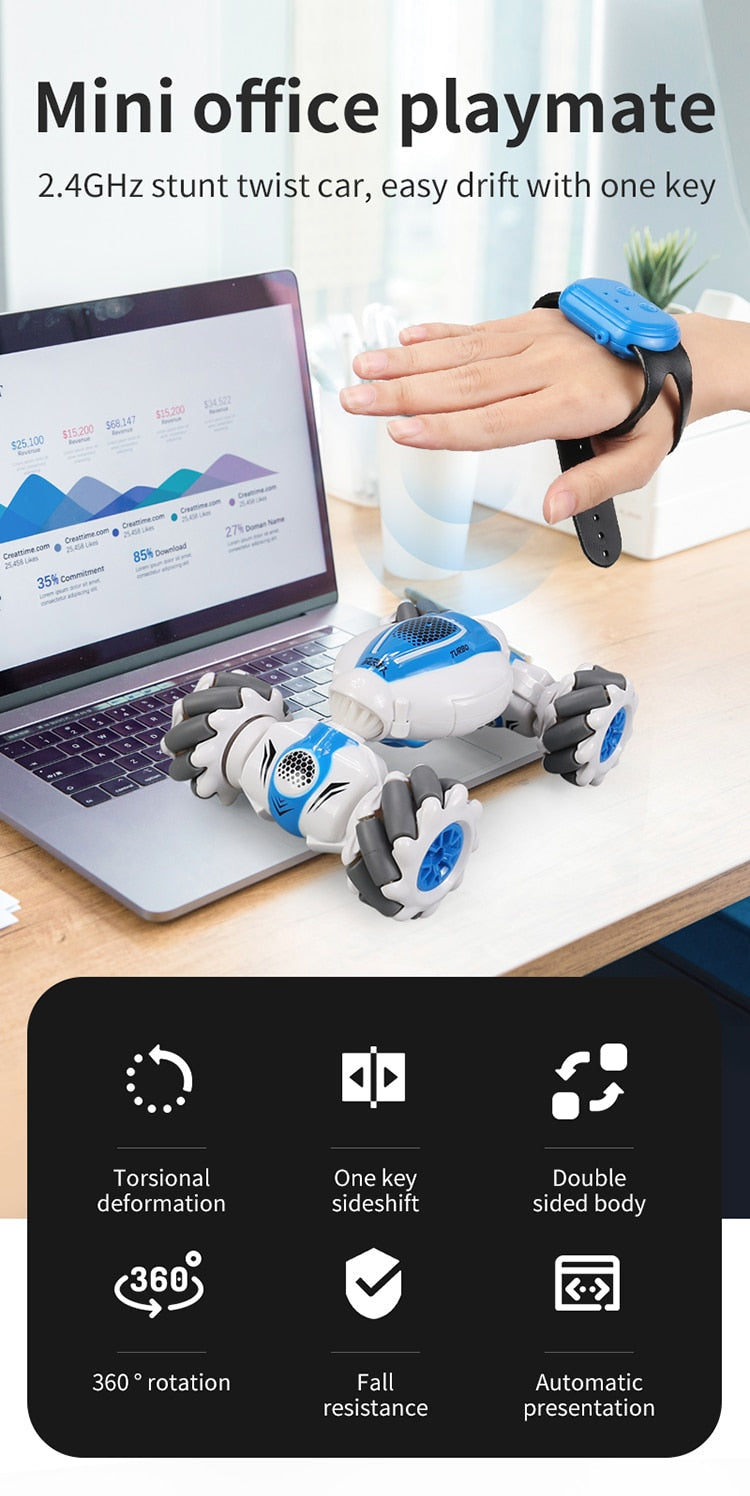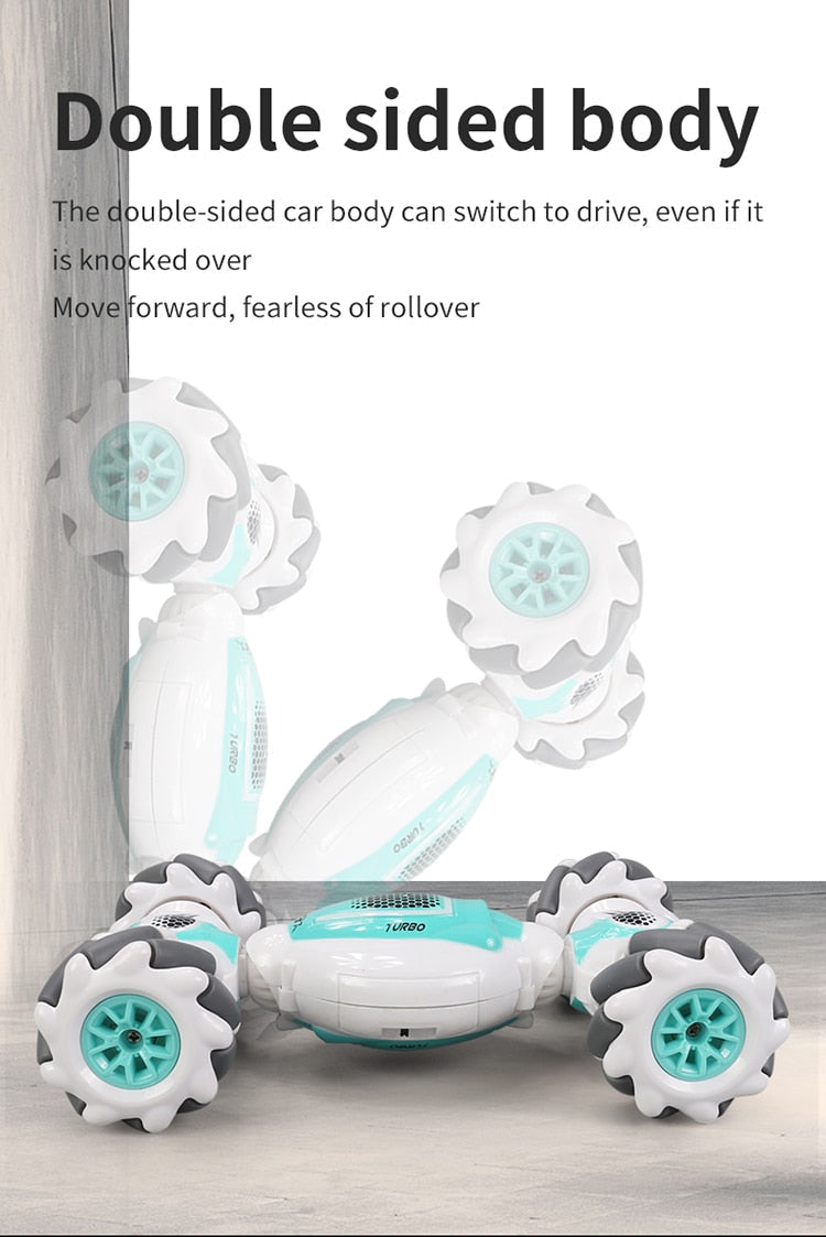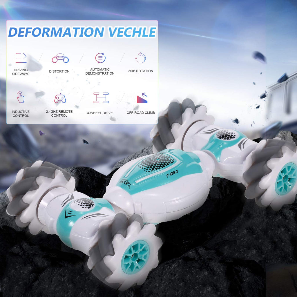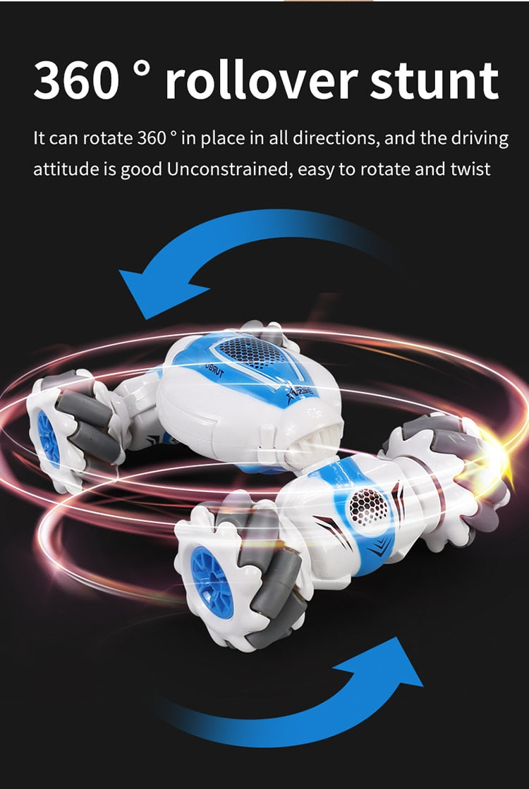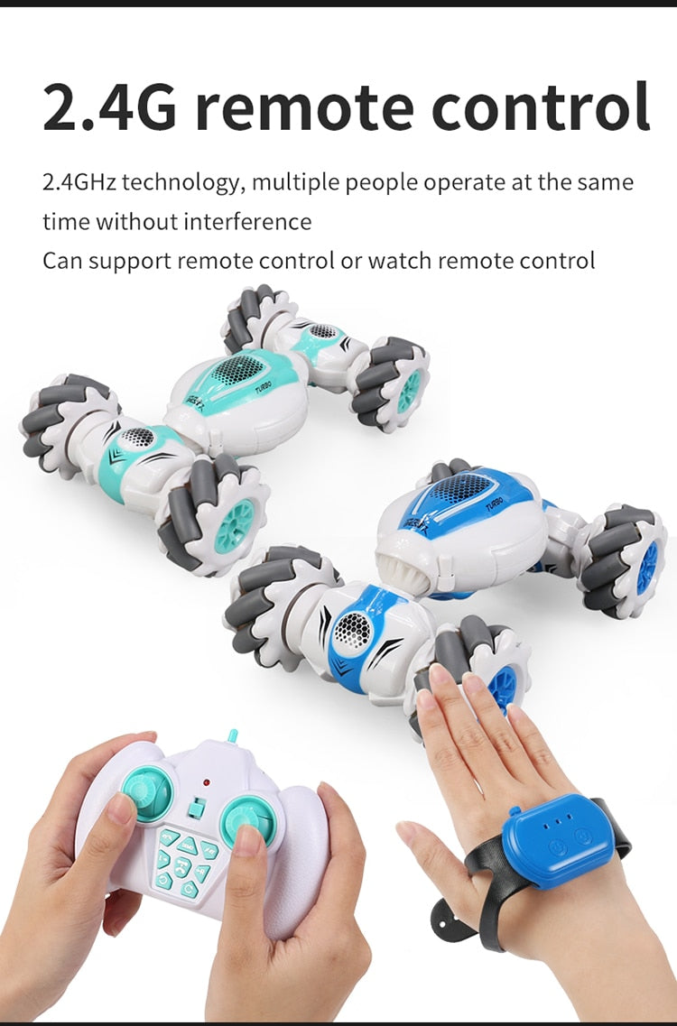 Gesture Sensing Deforming Stunt RC Car is a very cool car, it has high speed. And forward, back, turn left, turn right is very quick, quickly overcomes all obstacles. It will be a lot of fun for your child, the car is the perfect gift for your child The racing car is easy to carry and has a number of cool and insane features. With its powerful motor system and easy-to-use remote control, the racing car ensures hours of fun.