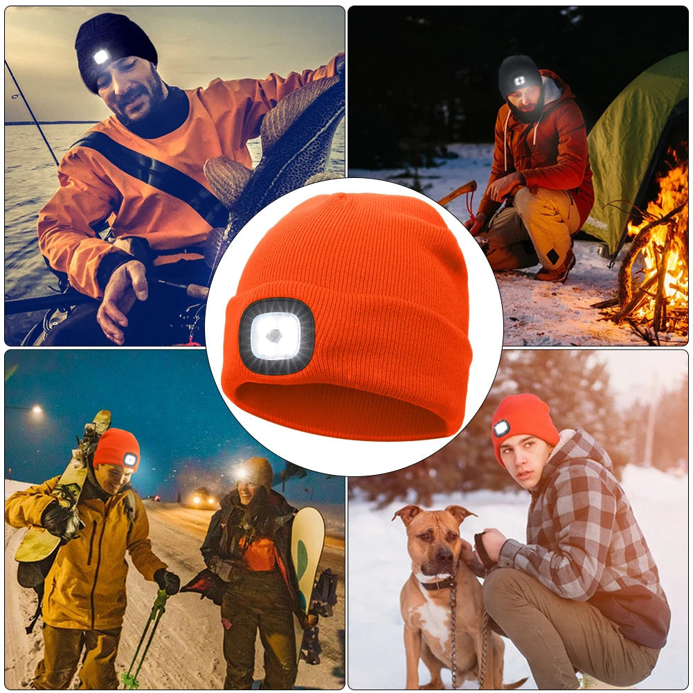 LED Beanie Knitted Hat – Warm Winter Knit Cap with Hands-Free Headlamp