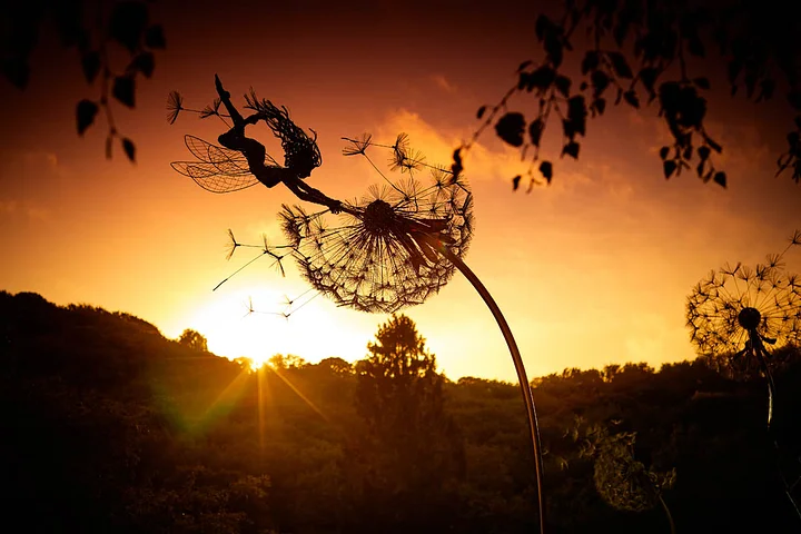 • Fairies are formed of metal, as are dandelion and branch materials.