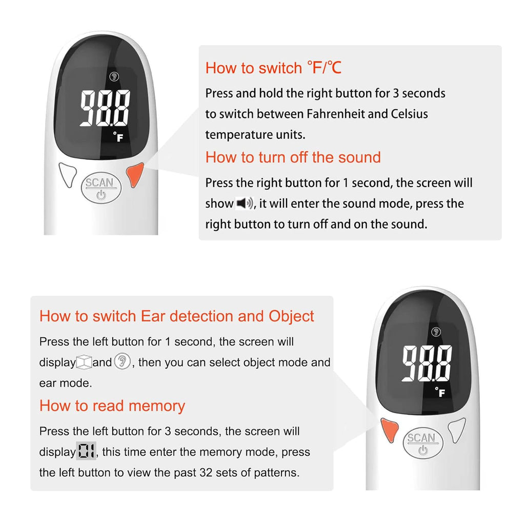 That's not all! The thermometer stores 32 previous readings and features adjustable sound settings for calm temperature checks. Plus, the convenient °C/°F switching option and protective cover ensure lasting reliability and consistent accurate measurements.