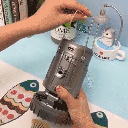Whether you're under the stars or braving a blackout, this multifunctional lantern and fan keeps your campsite illuminated, ventilated, and powered. Designed for convenience and durability, it combines solar charging, multiple power options, and portable comfort for any outdoor escape.