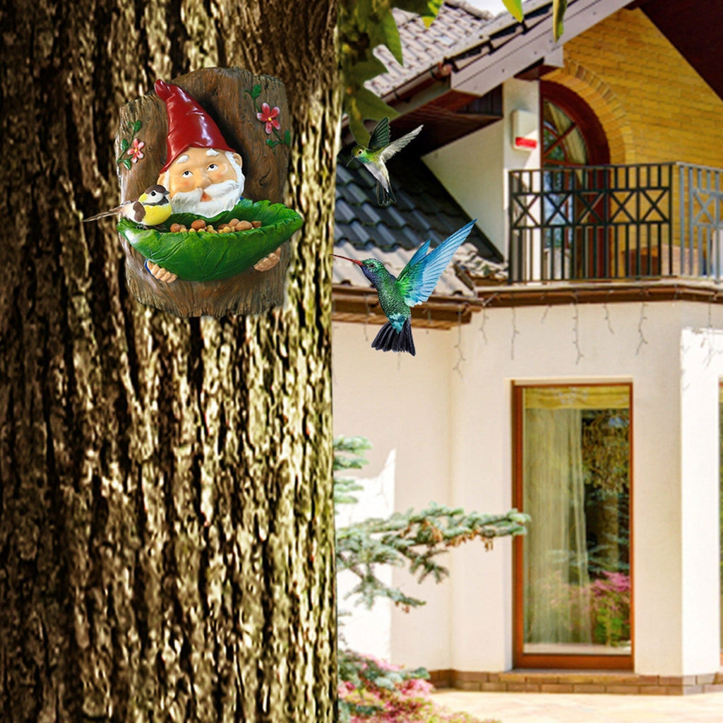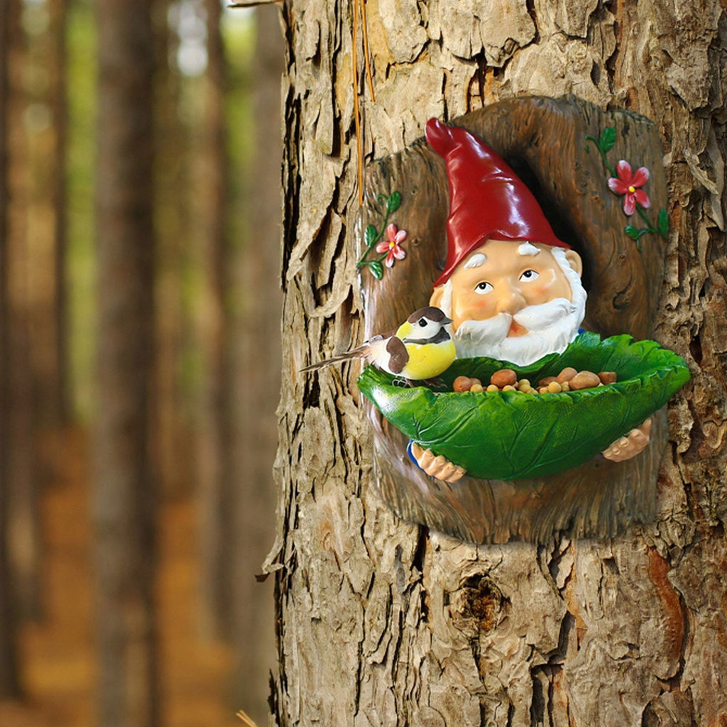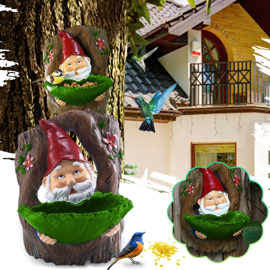 This special Gnome Bird Feeder is holding a bowl of green leaves, you can put some dried fruits or other ingredients in it. You'll see a lot of birds will be attracted to it. Fill your yard with a natural atmosphere and hear the birds chirping.