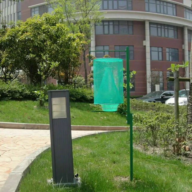 • Assembly instructions: Clip the inner cone onto the upper part of the net. Slide the green bowl into the iron circle at the bottom of the net. Put the bait in the bowl. Hang the trap in a dense fly area.