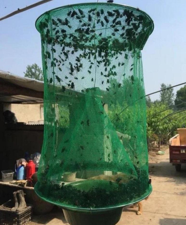 The Reusable Folding Fly Trap Cage Net is a fly catcher gnat trap that is made of high-quality iron wire, plastic, and gauze mesh construction, environmentally friendly, durable, and reusable. This is a new take on the flytrap. Efficient, safe and environmentally friendly. Easy to use and clean. Uses bait to trap the flies into the cage and starve them. And they won’t be able to escape.