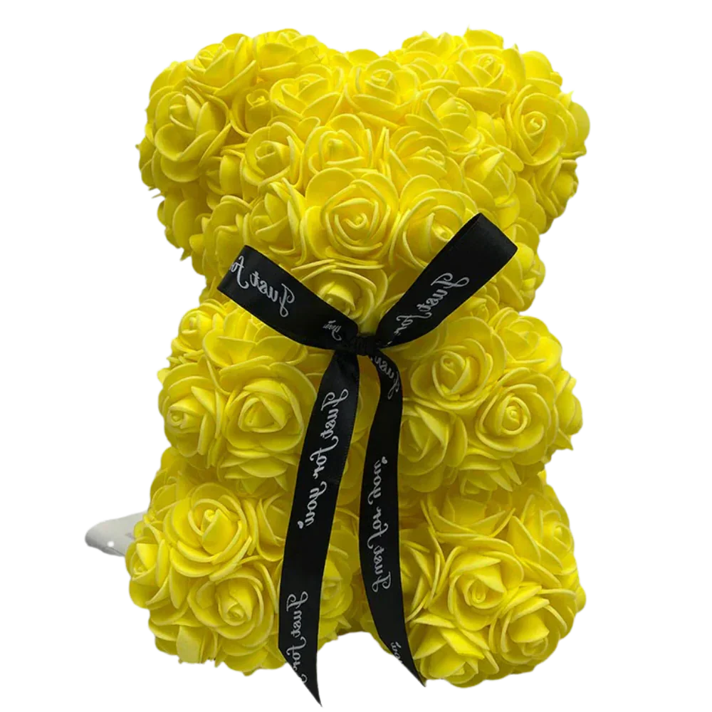 A tribute to love, this tiny teddy bear is composed of dozens of soft, smooth synthetic foam roses. You no longer have to choose between a bouquet of flowers and a lovely plush to give on Mother's Day, Valentine's Day, a wedding, or a birthday. Enough to please your mom, your fiancee, your wife, or your girlfriend, the pink teddy bear mixes the two.