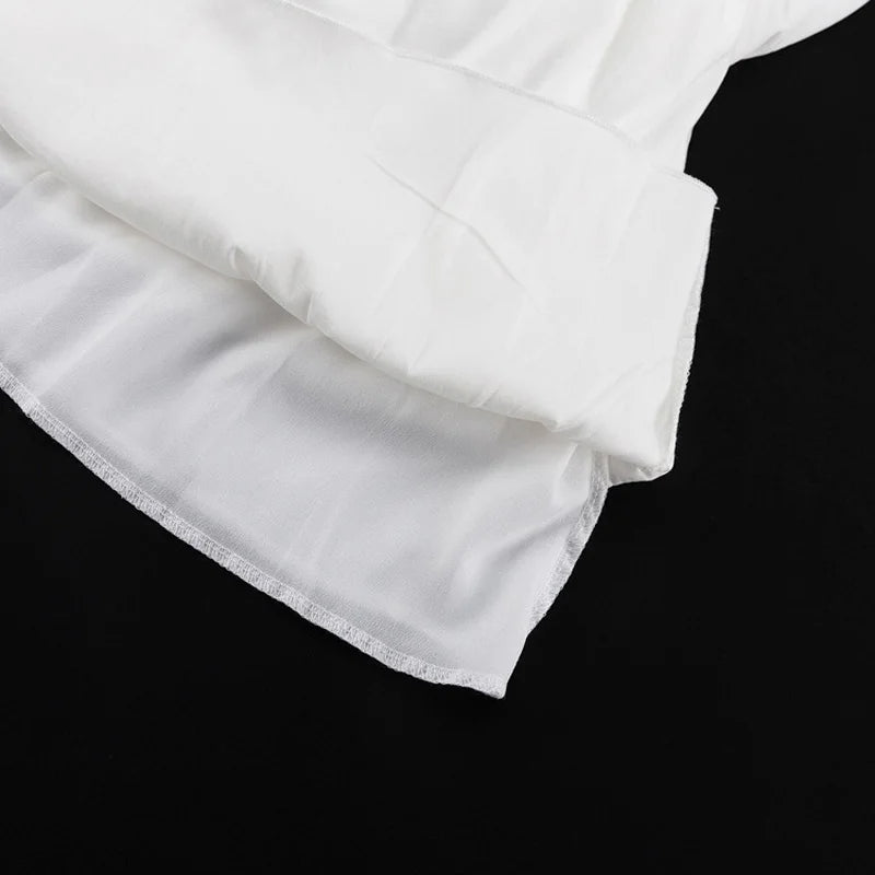 The pleated ruffle detailing adds a romantic and dynamic touch, enhancing the movement and charm of the dress. These delicate accents create soft volume, giving the dress an effortlessly flirty feel. Whether twirling on the dance floor or strolling through city streets, the ruffles ensure you turn heads with every step.