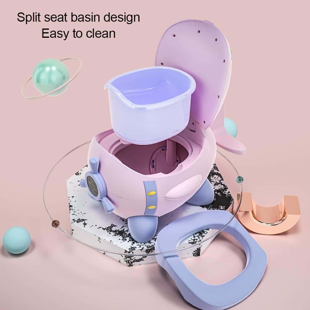 This Simulated Airplane Kid's Potty Training Seat provides realistic toilet experience for your baby with its adorable plane design. The practice potty has a high backrest and an anti-slip bottom so that your child can remain stable and safe on it. The backrest with an ergonomic design also adds to the comfort. Additionally, this friendly potty trainer has a lid and a removable inner pot, making it easy to clean. Your kids will love its adorable plane design very much.