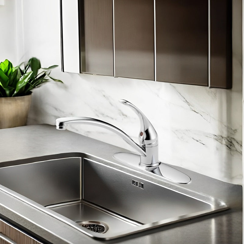 The high-arc spout on our chrome kitchen faucet swivels a full 360 degrees, offering total access to every corner of your sink. Whether you're rinsing dishes, filling large pots, or washing vegetables, this kitchen single handle faucet design ensures seamless adaptability, making every kitchen task easier and more efficient.