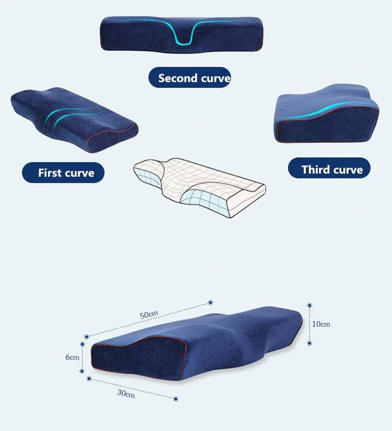 • Three Curves for a good night's sleep: The memory foam pillow has three different curves at required angles and heights for maximum comfort. It is 50cm long and 30cm wide with 6cm high at the front and 10cm high at the back.