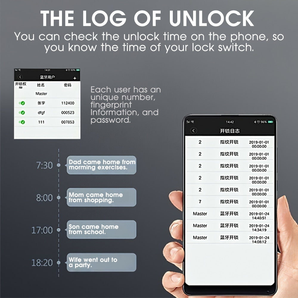 • Unlock method: Fingerprint, password, app (choose by yourself), key