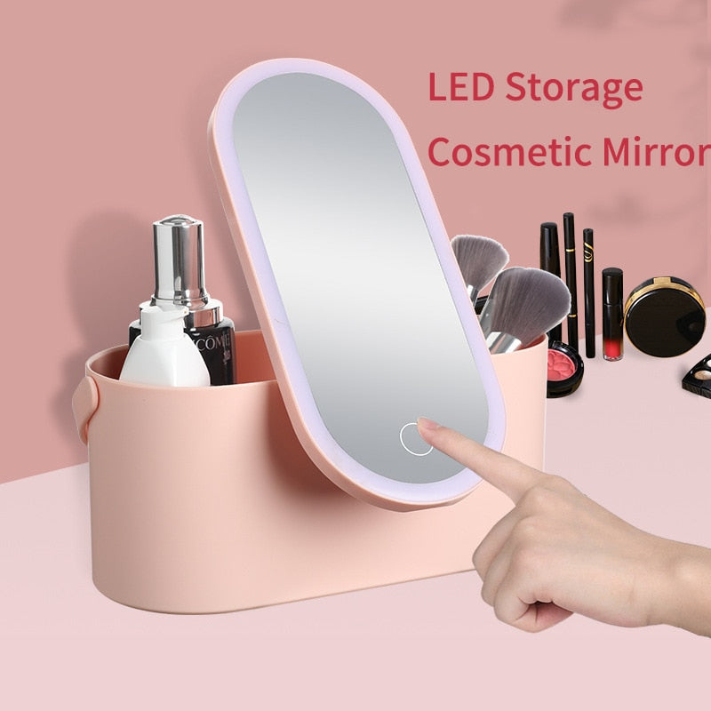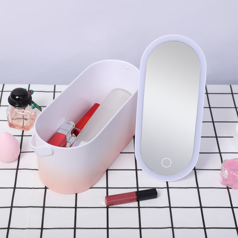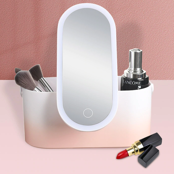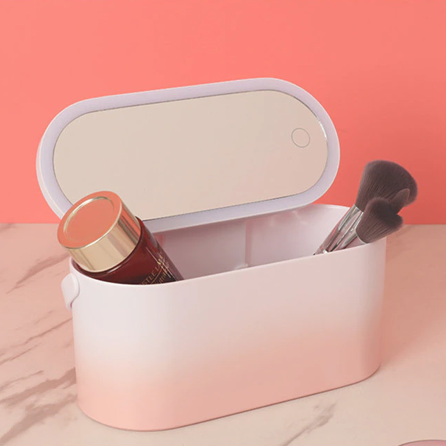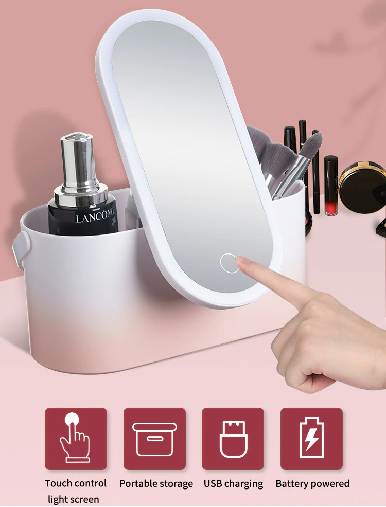 The perfect travel beauty companion. This Makeup Organizer Box makes traveling with all of your beauty products a breeze! It has an integrated removable mirror with adjustable LED lighting. This makeup travel case also features a compact, lightweight design with an ergonomic, soft rubber handle.